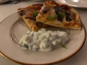 Add the cucumber and some amount of finely minced garlic to your desired amount of yogurt. Season with salt, pepper, and cumin to taste. If you want a bit more zing, splash in some lemon juice. If you want more of an allium kick, a bit of finely diced red onion or shallot won’t steer you wrong.